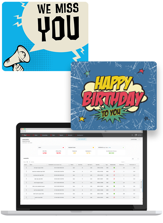 Digital Punch Card "We Miss You Offer" Trigger-based Automated Texts Birthday Club Anniversary Club Bounce Back Offers