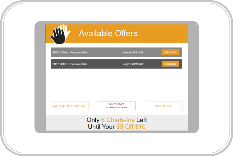 Fast & Easy Sign-up With the Thrive Loyalty cellular-enabled custom loyalty kiosk you’ll increase your sign-ups as much as 10x. The kiosk should be placed at your point-of-sale, hostess station, etc.